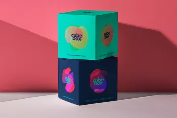正方形纸盒包装设计提案场景展示样机模板 Cube Packa