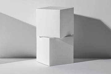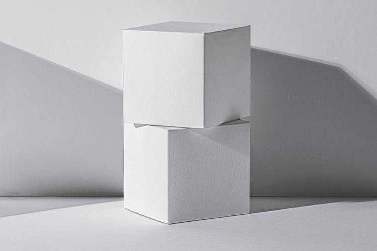 图穷联素材库 » 正方形纸盒包装设计提案场景展示样机模板 Cube Packa