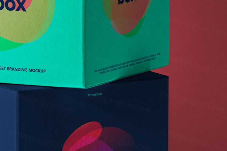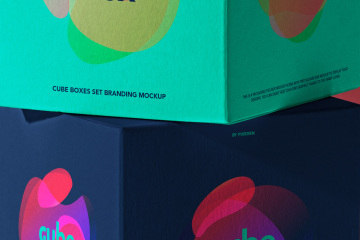 这是一套用于产品品牌设计展示的方形立方体 psd 盒子包装模型。使用智能层添加任何图形。