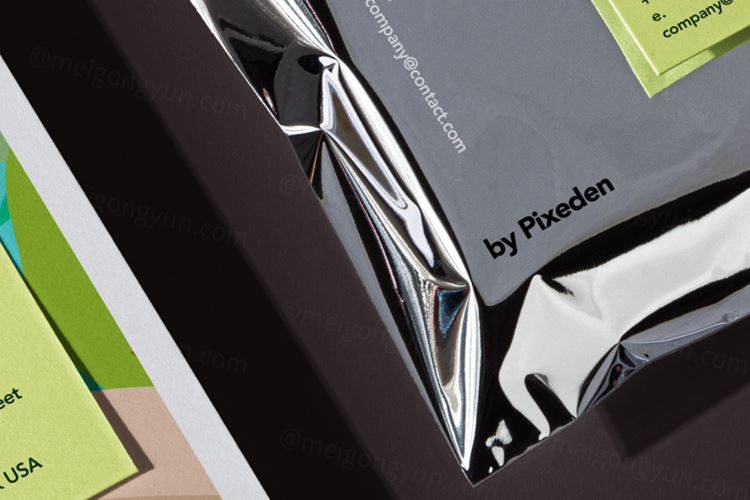 图穷联素材库 » 锡箔铝袋包装单页品牌设计提案场景展示样机模板 Alumini