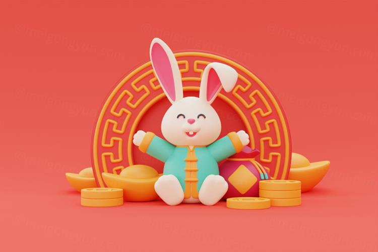 图穷联素材库 » 三维渲染2023年兔年卡通生肖玉兔场景3D插画高清背景图片素