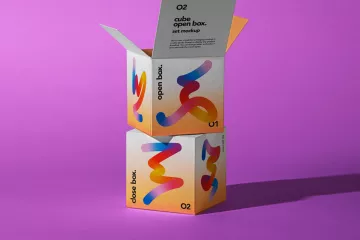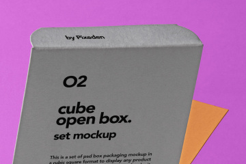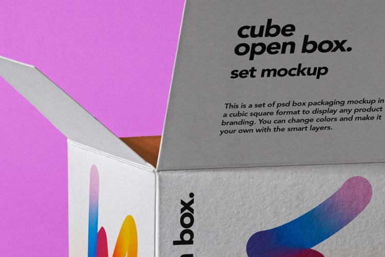 这是一组方形立方体 psd 包装模型打开和关闭以显示您的产品图形。借助智能层,您可以更改颜色并添加自己的设计。