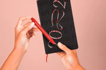 图穷联素材库 » 手持笔记本压印封面设计提案展示样机模板 Hand Holdi