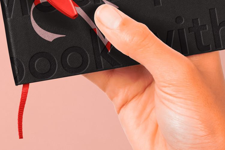 手持笔记本压印封面设计提案展示样机模板 Hand Holdi
