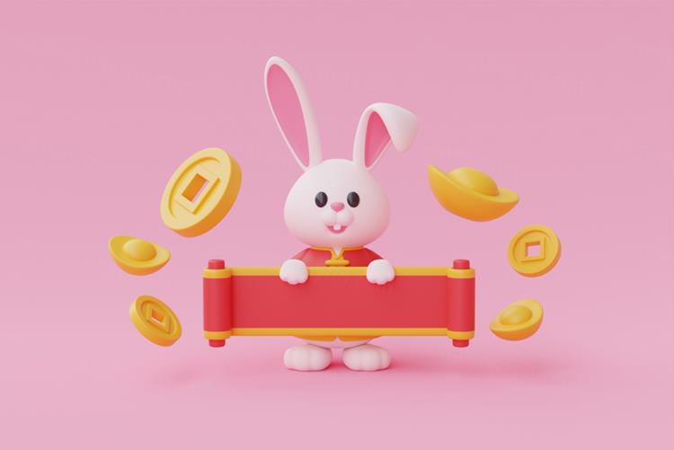 图穷联素材库 » 三维渲染2023年兔年卡通生肖玉兔场景3D插画高清背景图片素