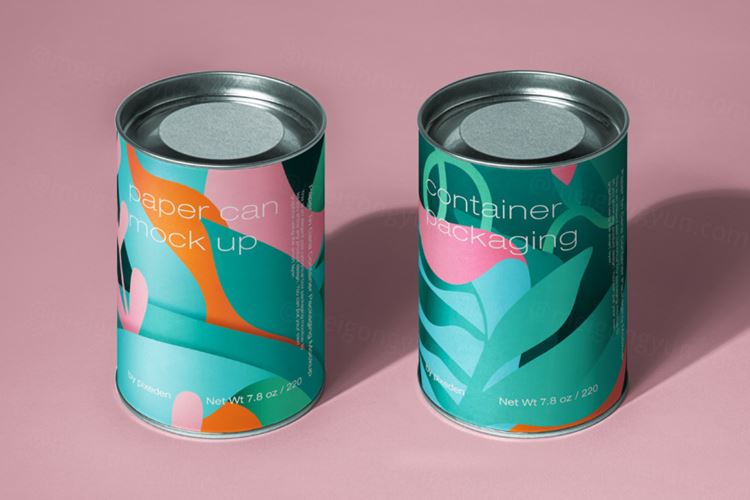 图穷联素材库 » 锡纸罐头包装设计提案场景展示样机PSD模板 Paper Ti