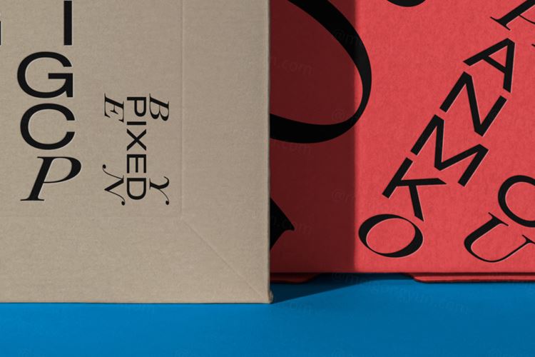 图穷联素材库 » 快递包裹瓦楞纸箱包装设计提案场景展示样机PSD模板 Pack