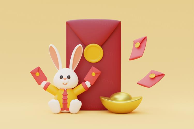 图穷联素材库 » 三维渲染2023年兔年卡通生肖玉兔场景3D插画高清背景图片素