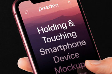 这是一只手拿着智能手机 psd iPhone 模型来展示您的应用程序和移动网页设计。您可以使用智能图层更改颜色和添加图形。