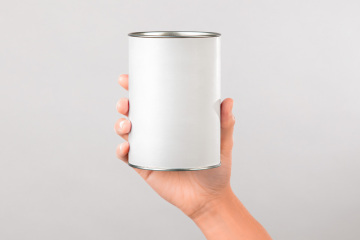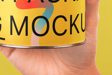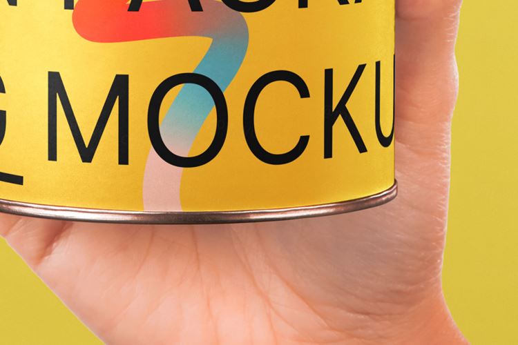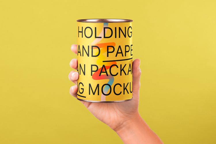 图穷联素材库 » 手持锡纸罐头包装设计提案场景展示样机模板 Hand Hold