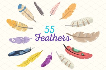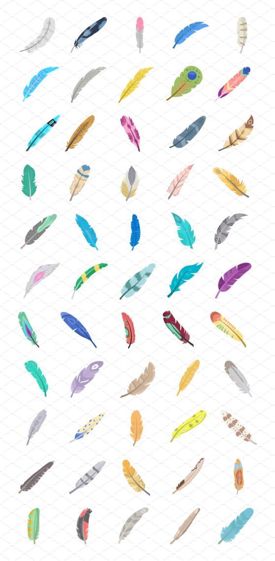 图穷联素材库 » 羽毛元素矢量icon素材 55 Flat Feather Vector Icon