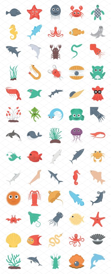 水下生活矢量图标下载 65 Flat Underwater Life Icons