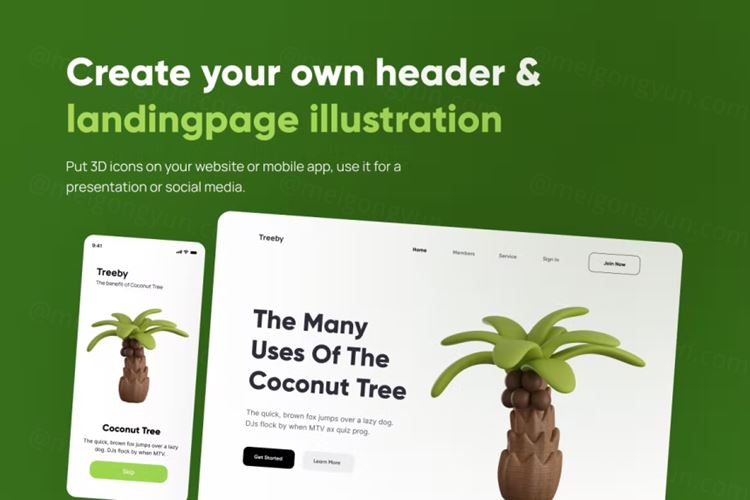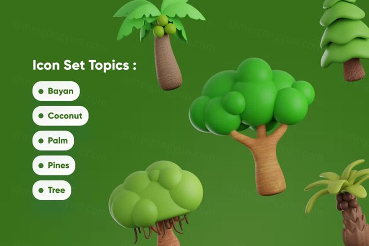 图穷联素材库 » 三维渲染卡通树木植物绿色环境主题3D插画素材 Tree 3D