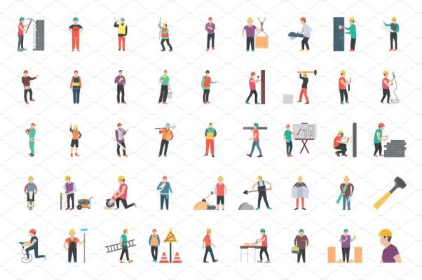 图穷联素材库 » 建筑工人图标素材 90 Construction Worker Characte
