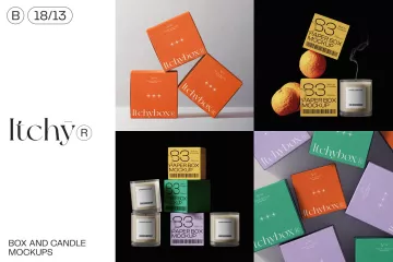 图穷联素材库 » 高质量正方形盒子蜡烛产品包装设计展示样机PSD模板 Itch