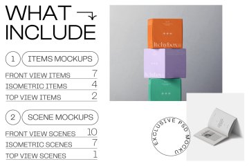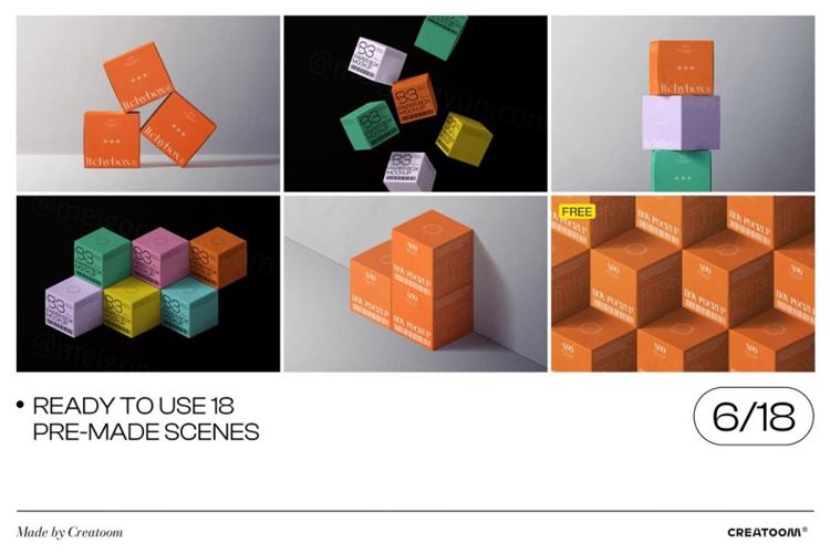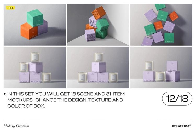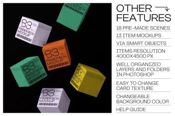 认识新的盒子和蜡烛模型。我们以不同的角度创建了这些盒子和蜡烛模型,以便您可以创建更详细的演示文稿。由于高分辨率(4000x4500),您可以近距离展示您的盒子和蜡烛模型。在这组中,您将获得 18 个场景和 13 个书籍模型。借助智能对象层,只需单击几下即可粘贴您的设计。您可以轻松更改框和背景的纹理、颜色。