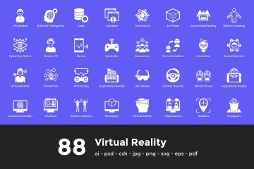 图穷联素材库 » 虚拟现实矢量图标素材 88 Virtual Reality Vector Ico