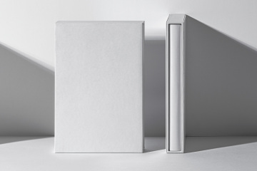 图穷联素材库 » 精装书籍封面书脊设计贴图展示样机模板 Slide Packa