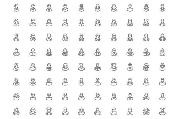 图穷联素材库 » 虚拟形象矢量图标素材 160 Avatars Line Icons