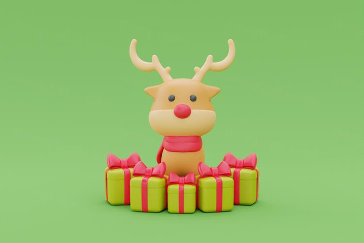 图穷联素材库 » 三维渲染可爱卡通麋鹿圣诞节礼盒装饰品元素高清图片素材