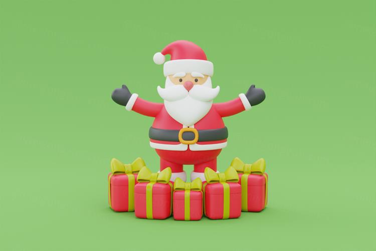 图穷联素材库 » 三维渲染可爱卡通圣诞老人圣诞节礼盒装饰品元素高清图片素材
