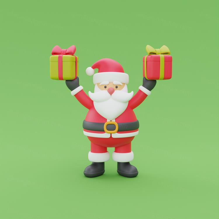 图穷联素材库 » 三维渲染可爱卡通圣诞老人圣诞节礼盒装饰品元素高清图片素材