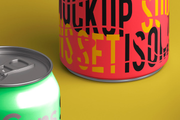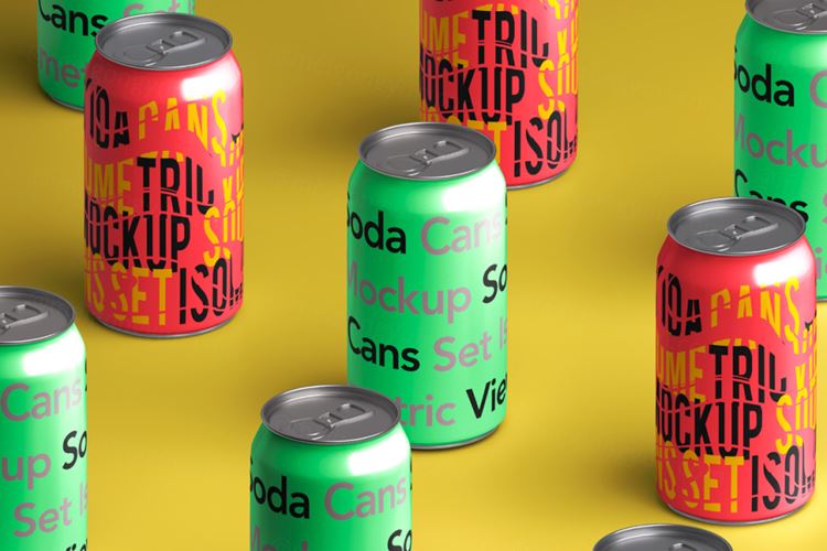 图穷联素材库 » 易拉罐汽水罐包装设计贴图展示样机模板 Isometric V