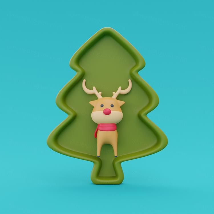 图穷联素材库 » 三维渲染可爱卡通麋鹿圣诞树圣诞节礼盒装饰品元素高清图片素材