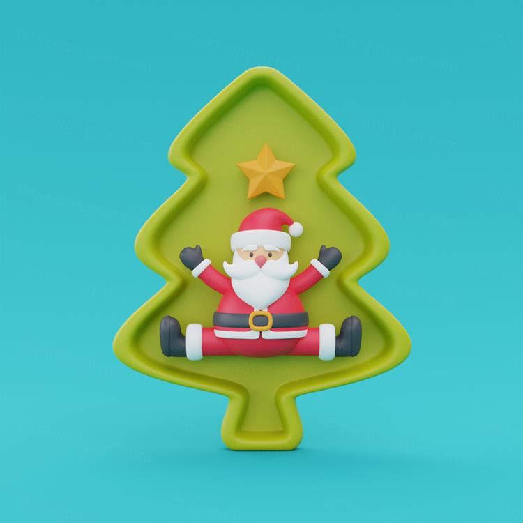 图穷联素材库 » 三维渲染可爱卡通圣诞老人圣诞节礼盒装饰品元素高清图片素材