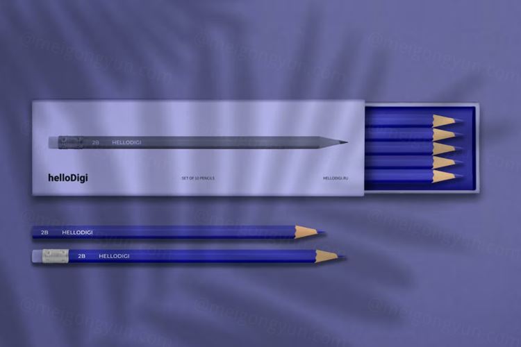图穷联素材库 » 盒装铅笔包装设计贴图展示样机PSD模板 Pencil Box
