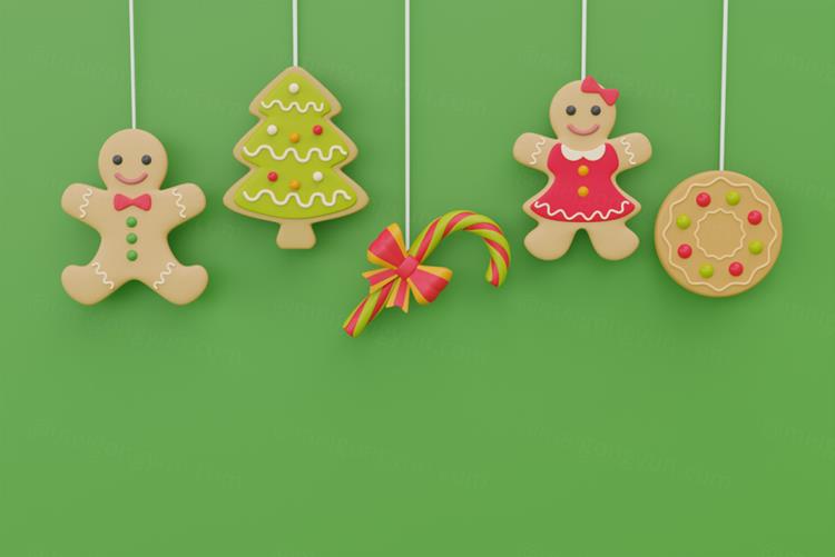 图穷联素材库 » 三维渲染可爱卡通姜饼圣诞节礼盒装饰品元素高清图片素材