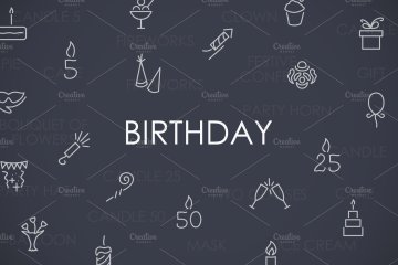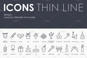 图穷联素材库 » 生日图标素材 Birthday thinline icons