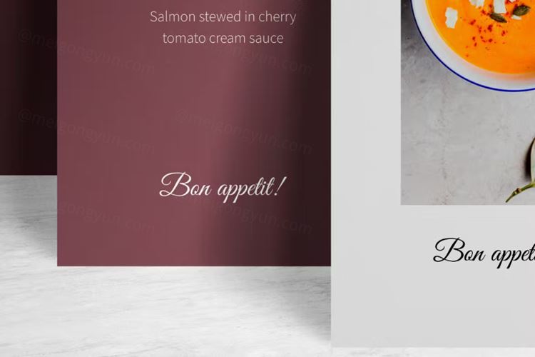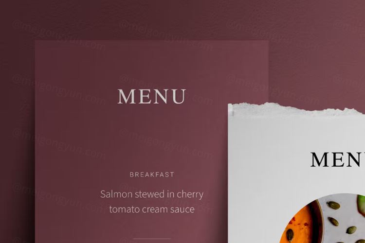图穷联素材库 » 高端餐厅酒店菜单卡片品牌VI设计贴图展示样机模板 Menu