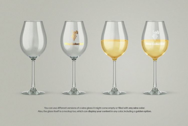 图穷联素材库 » 高质量红酒香槟高脚杯品牌包装设计贴图展示样机模板 Wine