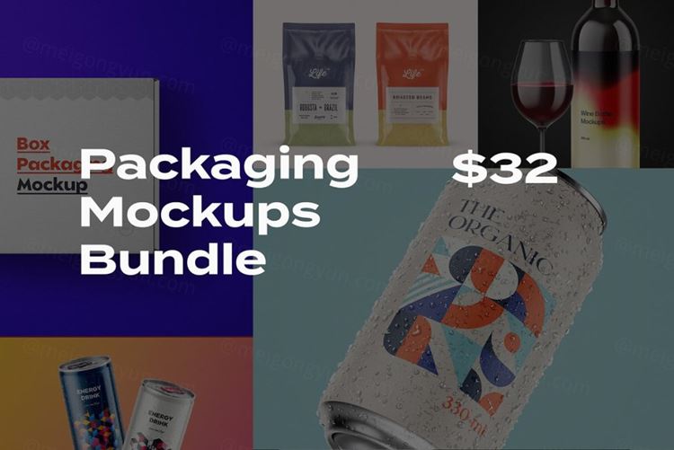 图穷联素材库 » 高质量饮料食品包装品牌设计贴图展示样机模板合辑 Packag