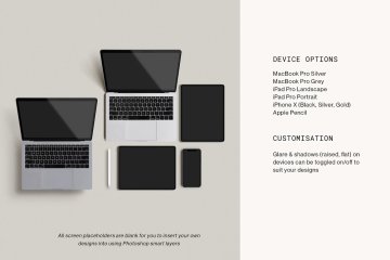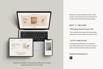 这款多功能场景创建器允许您在一个 Photoshop 文件中创建自定义网站模型并使用智能图层,因此您可以快速轻松地将自己的设计插入屏幕占位符。