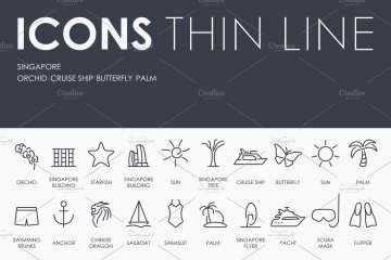 图穷联素材库 » 新加坡元素图标素材 Singapore thinline icons