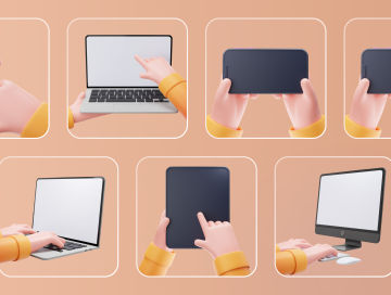 图穷联素材库 » 可爱的卡通手势操作手机ipad笔记本贴图样机模板素材 Moc