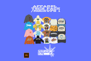 图穷联素材库 » 街头潮牌服饰T恤工装裤连帽衫帽子基础款纸样打样AI矢量模板素