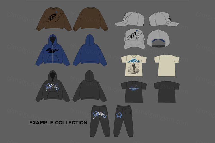 图穷联素材库 » 经典连帽衫衬衫外套羽绒服裤子基础款纸样打样AI矢量模板素材