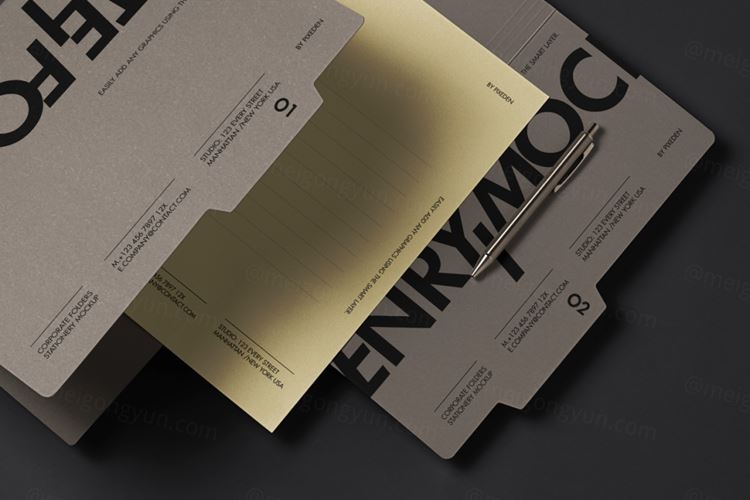 这是一套企业品牌psd文具样机,包括一组文件夹。使用智能层轻松制作您自己的作品。