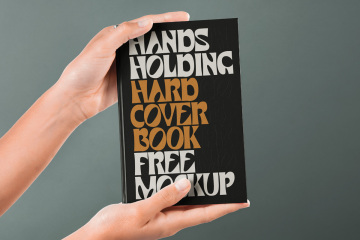 这是一本精装 psd 书样机,双手捧着它。借助智能层展示您自己的图形,非常适合您的编辑和品牌展示。