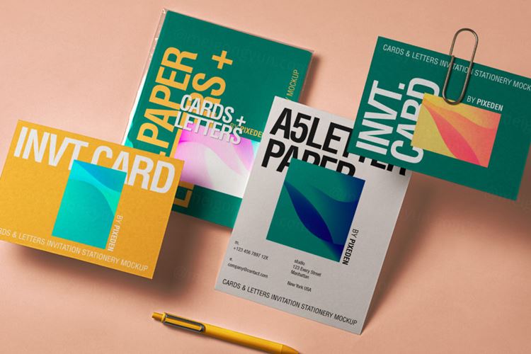 高质量卡片A5纸张场景企业品牌VI设计贴图样机模板 Lett