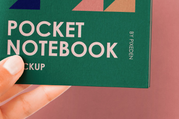 图穷联素材库 » 高质量手持小册子笔记本设计贴图展示样机模板 Hand Hol