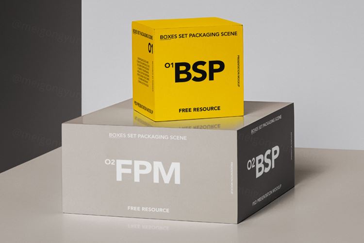 图穷联素材库 » 高质量正方形纸盒包装设计贴图展示样机模板 Boxes Set