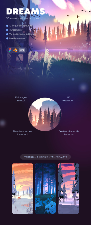 使用 Dreams Animated 3D Landscape 让您的下一个项目变得美丽迷人。