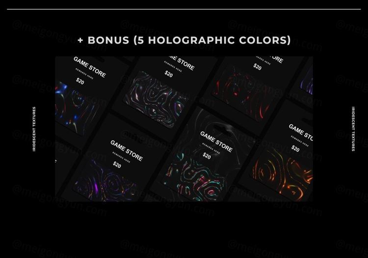 图穷联素材库 » 潮流未来派酸性艺术彩虹迷幻镀铬金属全息渐变纹理背景素材 IR