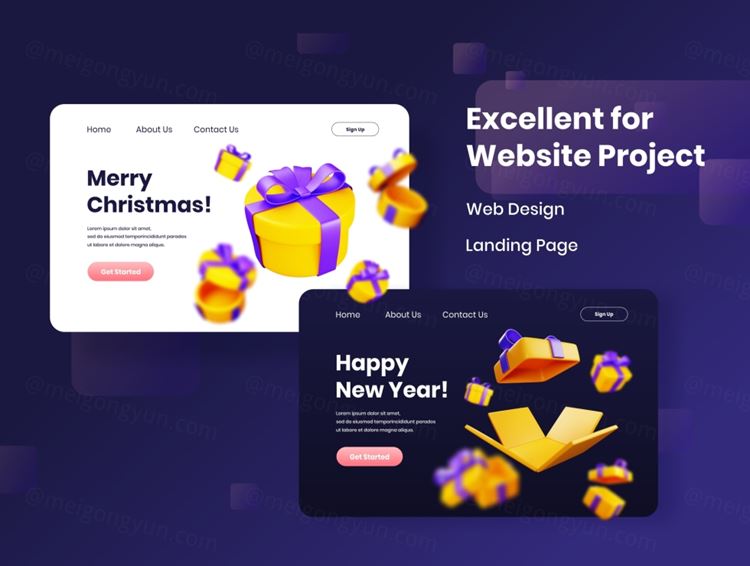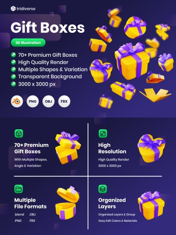图穷联素材库 » 高质量三维渲染高级礼品盒礼物盒子3D插画素材集 Gift B