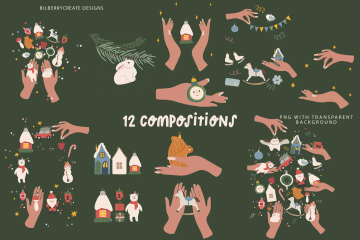 Funny Christmas Toys 是一个充满个性化元素的设计集,圣诞玩具、鲜花、花束、数码纸、冬季名言、无缝图案、卡片、随时可用的组合……请务必单击图像以查看所有元素。