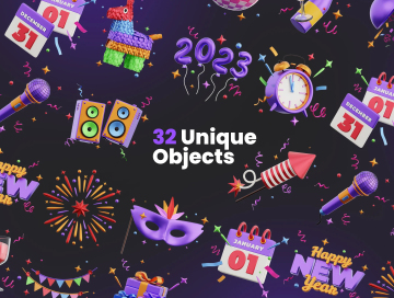 新年派对 3D 图标可用于设计需求、动画、网页设计、UI 设计、演示幻灯片、海报等。